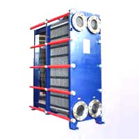 板片人字形波紋,介質(zhì)流動形成湍流狀態(tài),粘膠式密封墊片。傳熱系數(shù)能高達(dá)2000~6000 W/m2.℃ 左右。