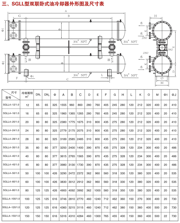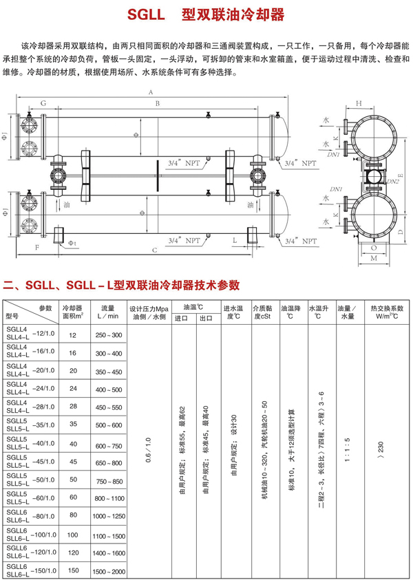 該冷卻器采用雙聯(lián)結(jié)構(gòu),由兩只相同面積的冷油器和三通閥裝置構(gòu)成,一只工作,一只備用,每個(gè)冷卻器能承擔(dān)整個(gè)系統(tǒng)的冷卻負(fù)荷,管板一頭固定,一頭浮動(dòng)、可拆卸的管束和水室箱蓋,便于運(yùn)行過(guò)程中清洗、檢查和維修。冷卻器的材質(zhì),根據(jù)使用場(chǎng)所、水系統(tǒng)條件可有多種選擇。
